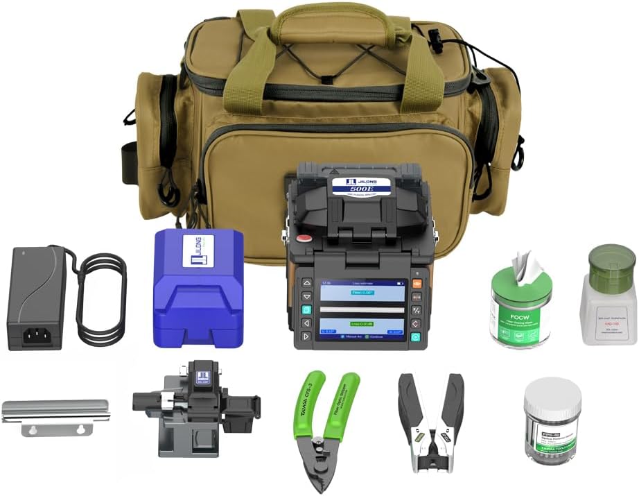 Mini JILONG 500E FTTx Portable Fiber Fusion Splicer. Core Alignment Splicing Machine Fast-splicing 8s, Fast-heating 18s (500E Fusion Splicer)